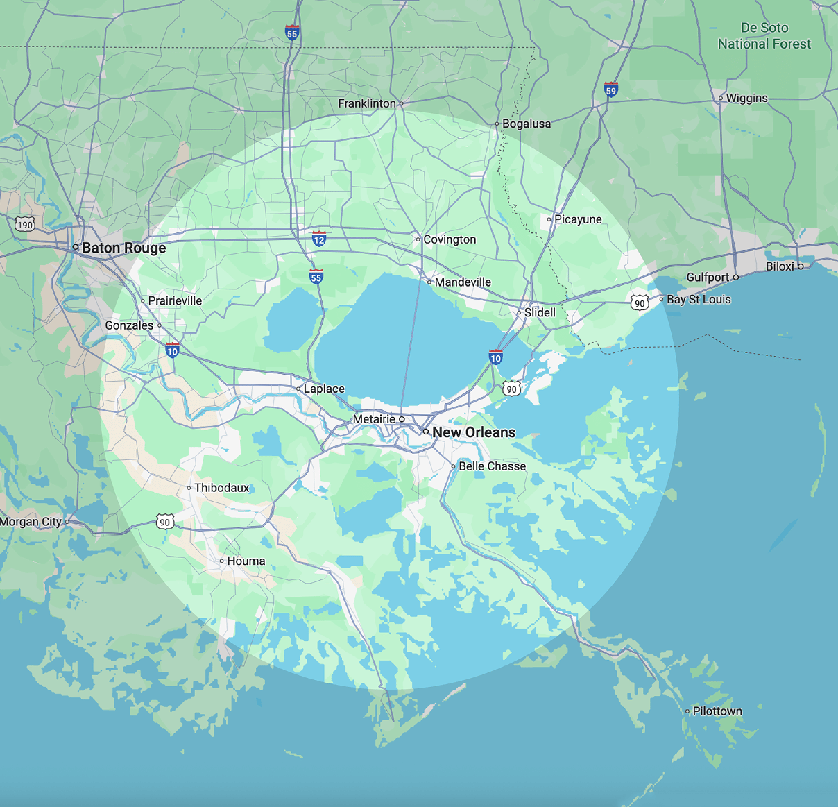 Our service area includes Orleans Parish, Jefferson Parish, St. Charles Parish, St. James Parish, St. John Parish, St. Bernard Parish, Tangipahoa Parish, St. Tammany Parish, and Plaquemines Parish.